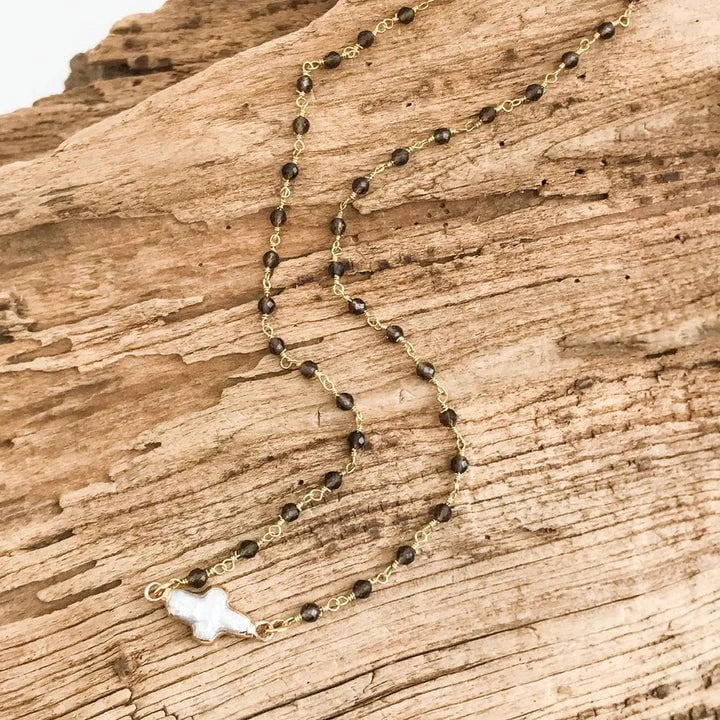 Add a touch of charm with this delicate 16" beaded chain featuring a sideways cross framed by pearls. Its subtle sparkle makes it perfect for layering, letting you mix and match to create your own playful, stylish look.