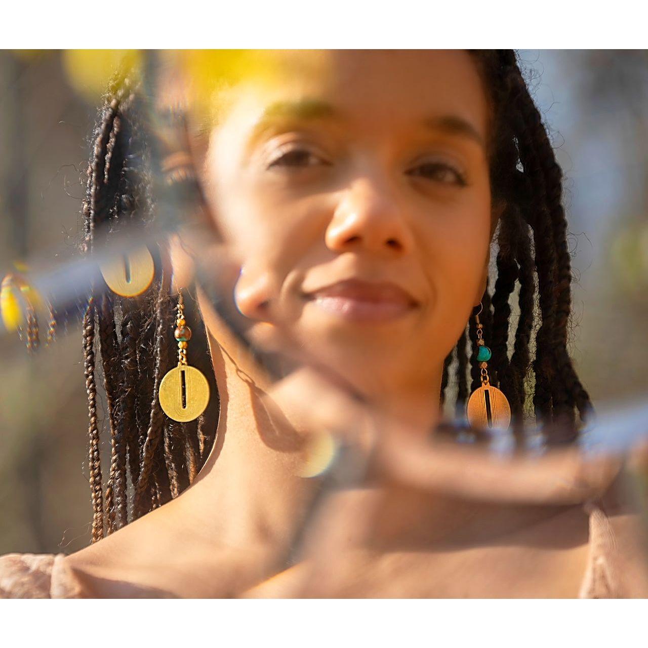 The medallions, which measure 1 inch in diameter, dangle gracefully from turquoise gold & brown Imperial Jasper beads, offering a beautiful contrast of earthy tones. With a length of 2.75 inches, these earrings are just the right size for making a statement without overwhelming your style. Whether you're dressing for a casual outing or seeking that perfect accessory to complete a boho look, these earrings are a must-have.