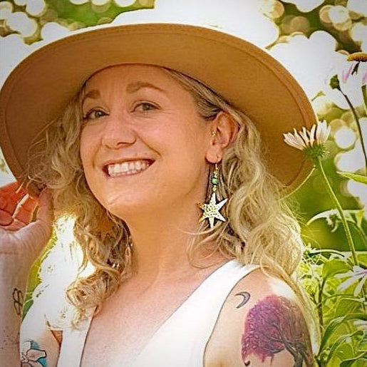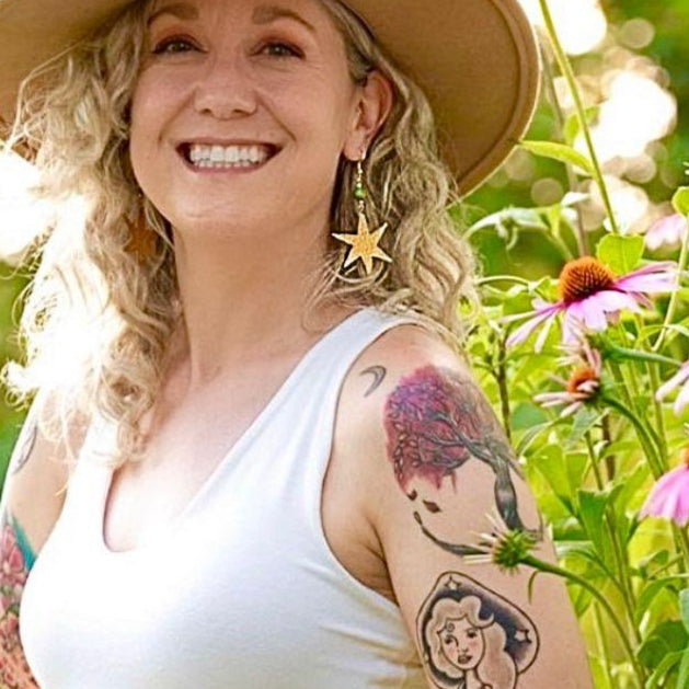 To complement the celestial design, we've paired these statement earrings with Sea Sediment Jasper gemstones—earthy blue stones that evoke the mystery of the night sky. Lightweight and comfortable, these earrings are the perfect balance of bold, fun, and timeless elegance.