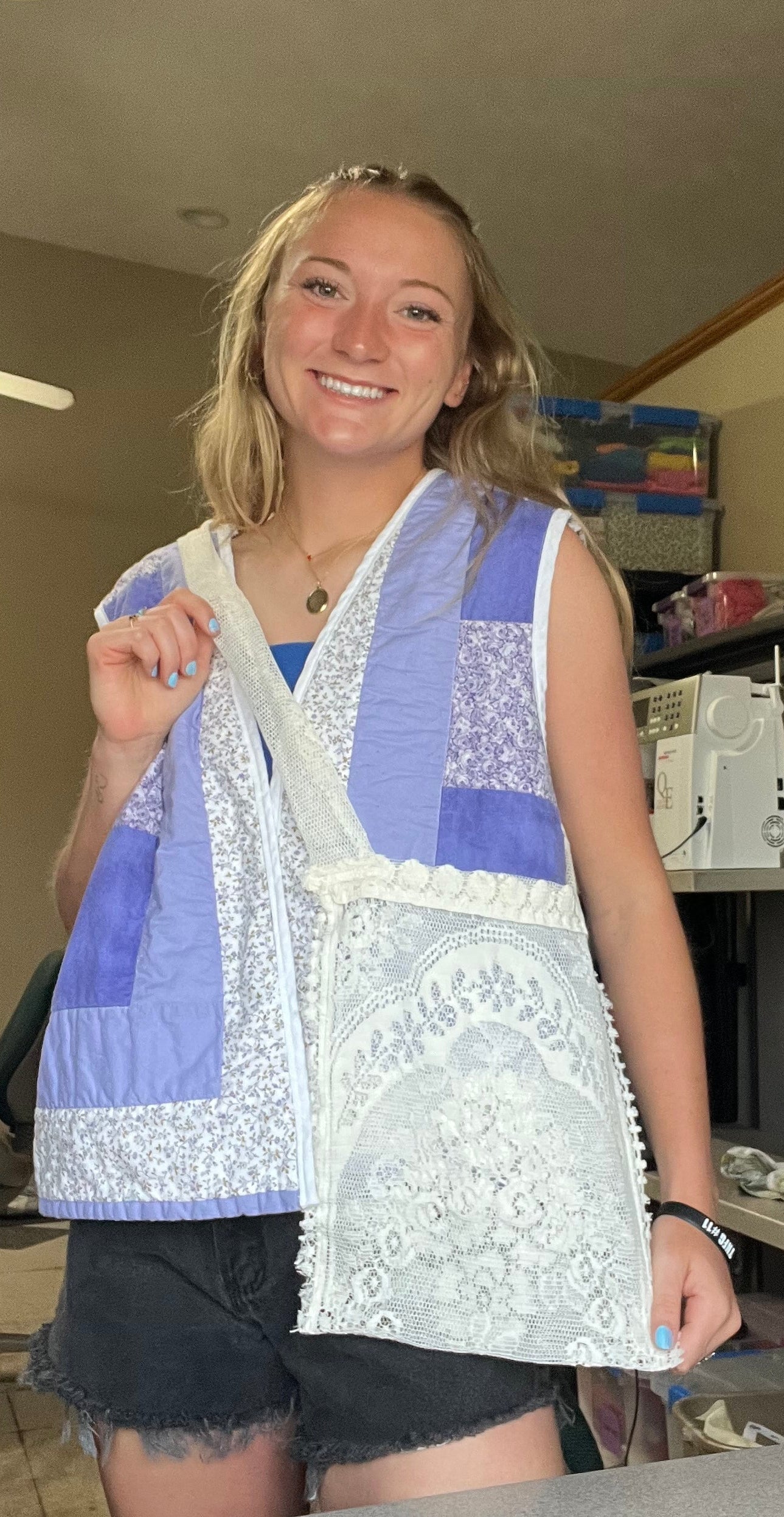 Beautiful lace crossbody bag created from a vintage table runner. Love this upcycle project! Dimensions are 12" tall by 10" wide with a crossbody strap that is 38" long.