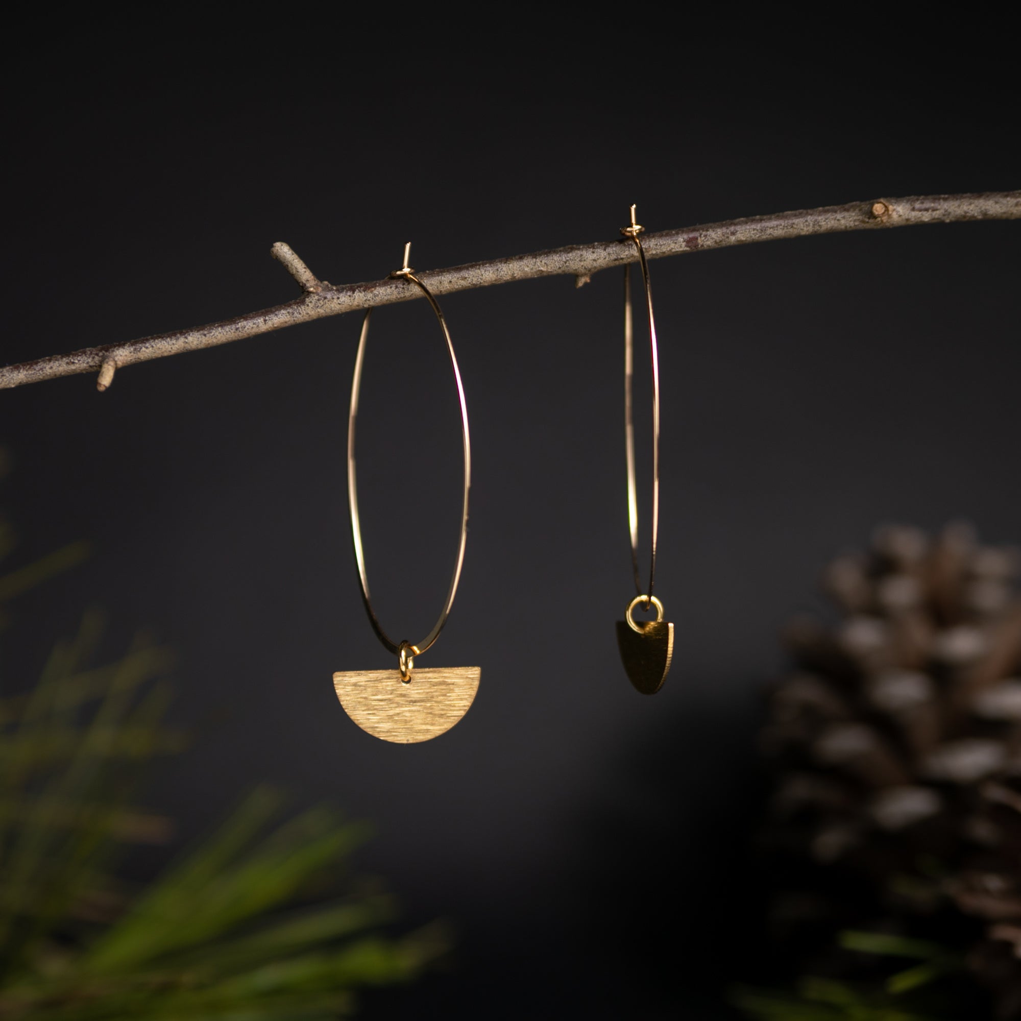 Modern Oval Hoops with Half Moon Charms
