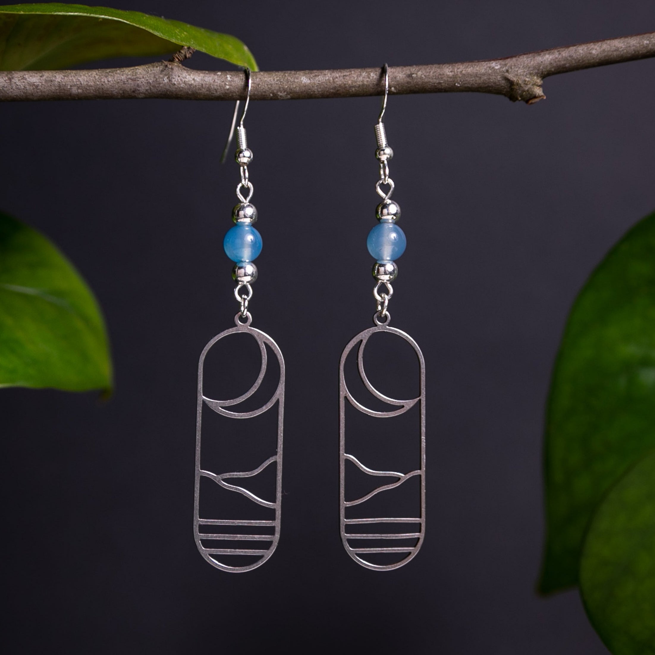 Accentuated with cool blue Agate beads, these earrings capture the serene hues of a tropical sea while sterling silver ear hooks ensure comfort and durability. Whether you're dressing up a summer sundress or adding a celestial touch to casual denim, these earrings are a stunning addition to your collection.