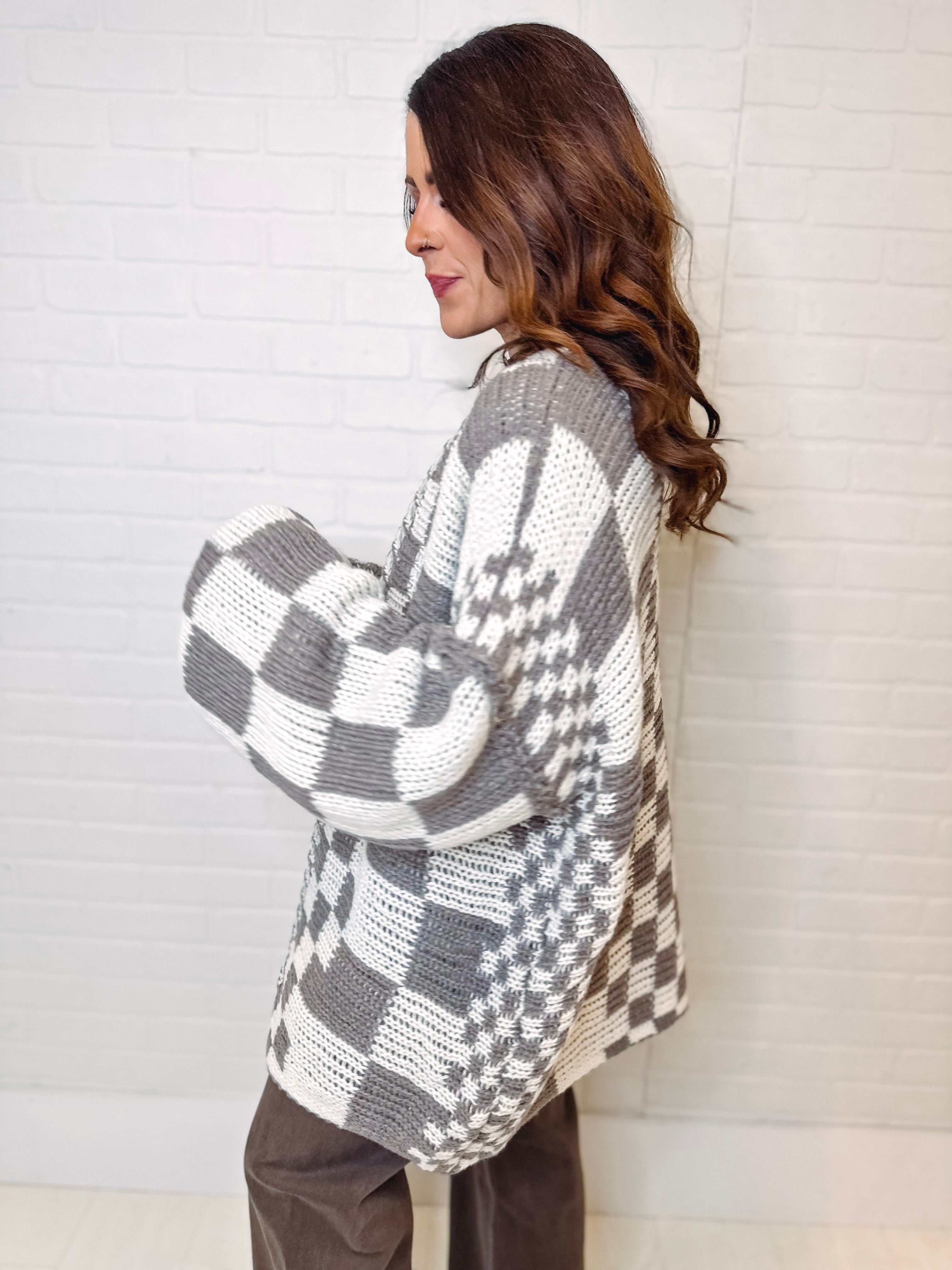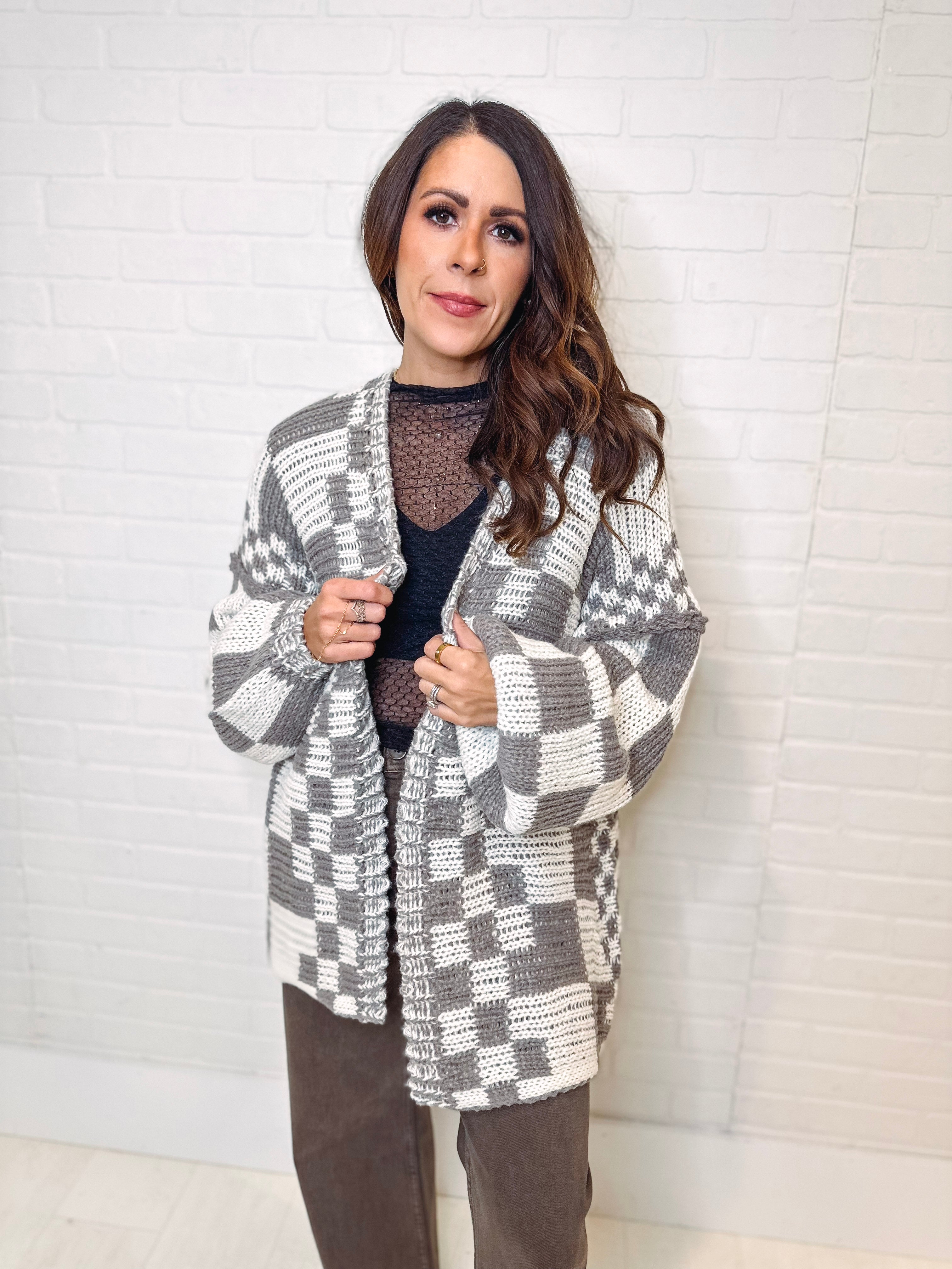 She's Edgy Checkered Oversized Cardigan Sweater