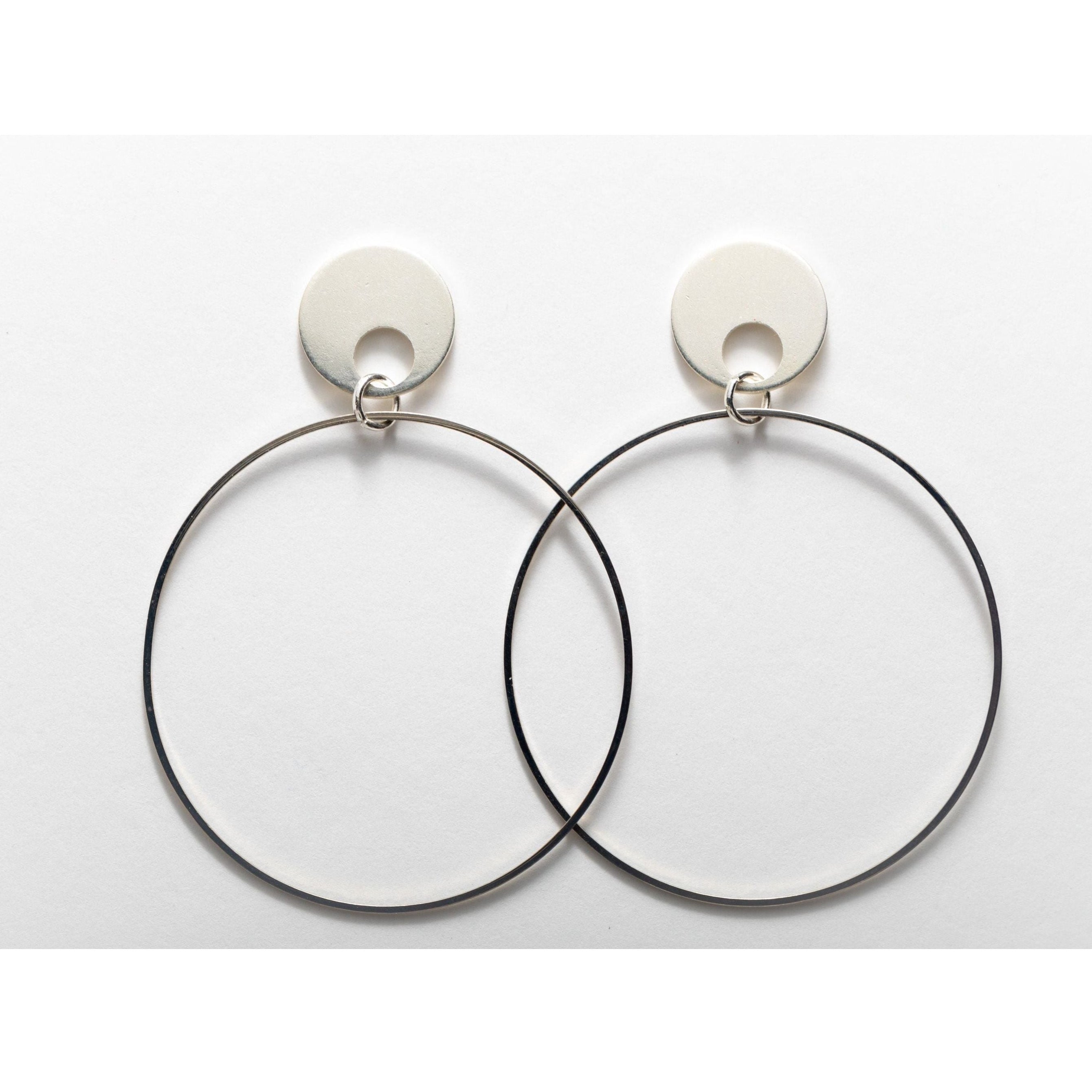 Timeless and effortlessly chic, the Silver Halo Post Hoop Earrings feature matte silver-plated rings suspended from sleek circular posts. With a minimalist design and 40mm hoop diameter, these lightweight earrings are a staple accessory for any occasion.