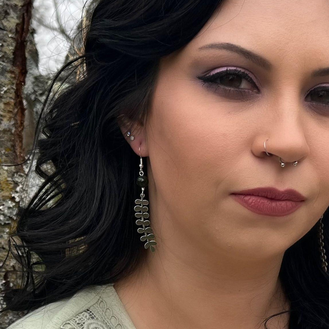 Bring the mystical beauty of nature to your jewelry collection with the Swamp Fern Earrings, featuring dark green Swamp Agate gemstones paired with intricately detailed silver fern stems. Inspired by lush forest landscapes, these earrings offer earthy elegance that complements any season.