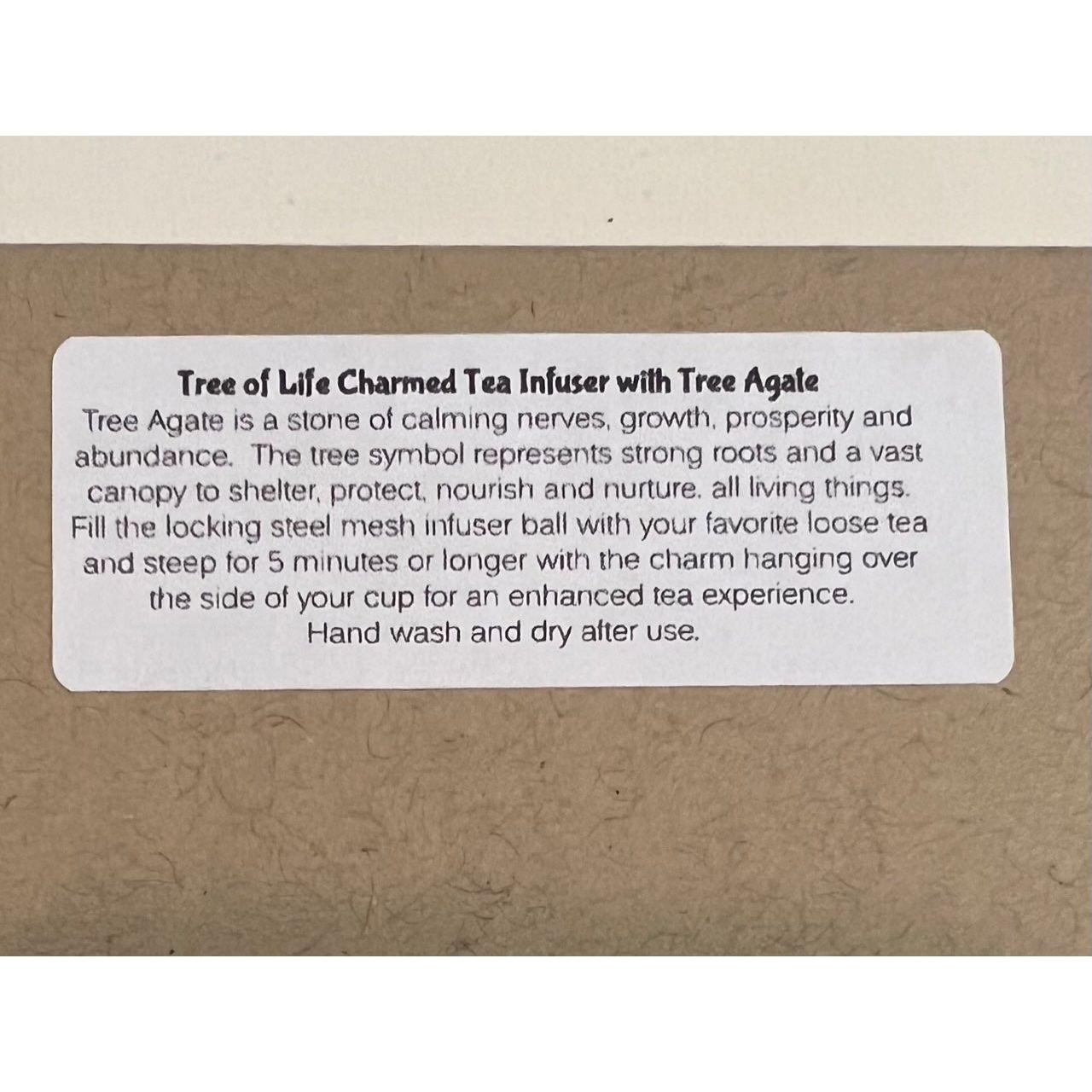 Enhance your tea drinking experience with this beautiful tree-themed loose tea strainer. These are made with a round silver Tree of Life charm and 3 real 8mm Tree Agate beads. The tree charm is 1 inch in diameter and securely attached to the infuser ball chain and beads with steel wire. Fill the locking steel mesh steeping ball with your favorite loose tea and submerge in hot water with the charm hanging over the outside of your cup for a lovely decorative touch.