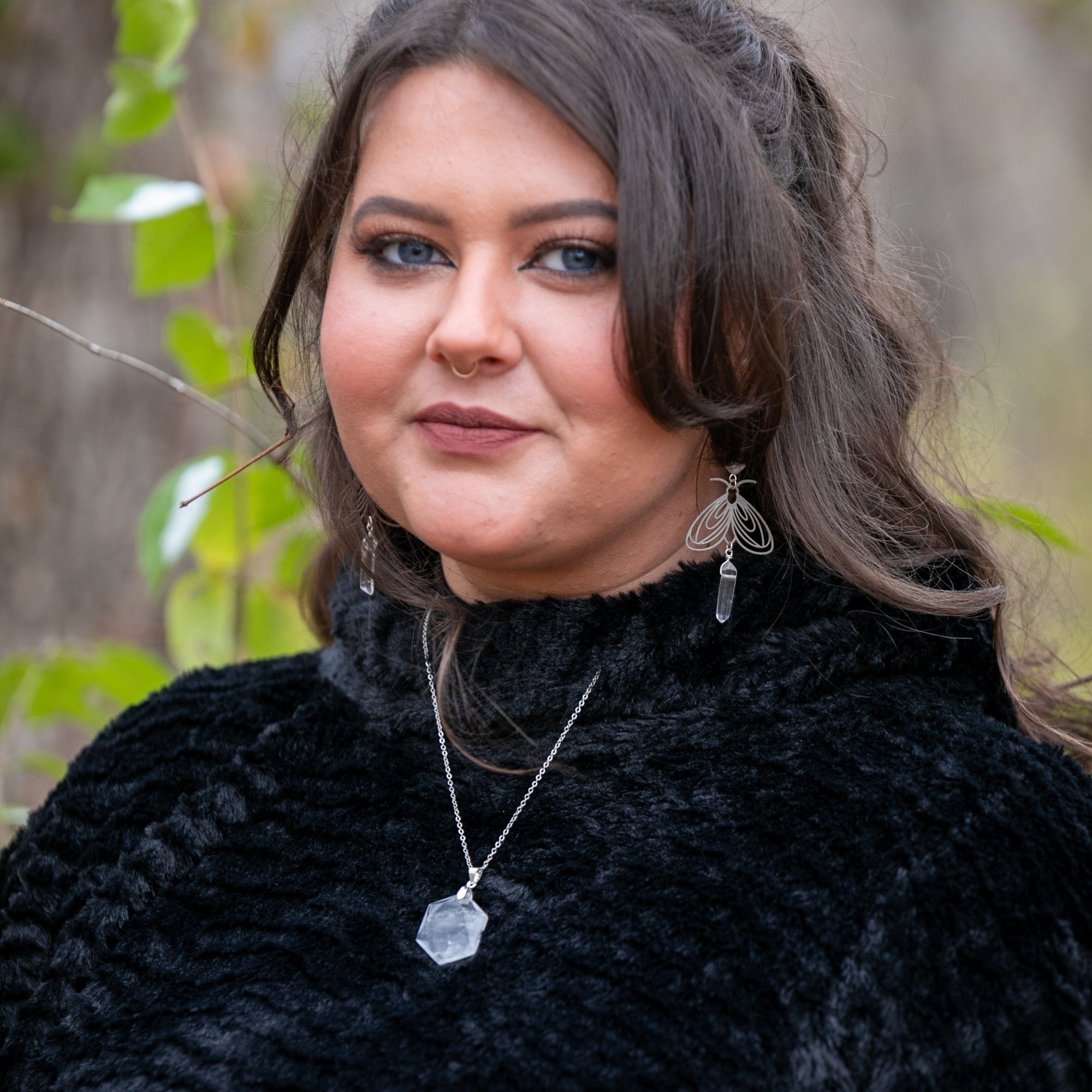 Embrace clarity and balance with the Quartz Crystal Hex Necklace, featuring a hand-carved, faceted hexagon clear quartz pendant. Known as the "Master Healer", clear quartz is believed to amplify energy, enhance focus, and promote spiritual well-being. Its neutral, translucent beauty makes it a versatile addition to any jewelry collection.