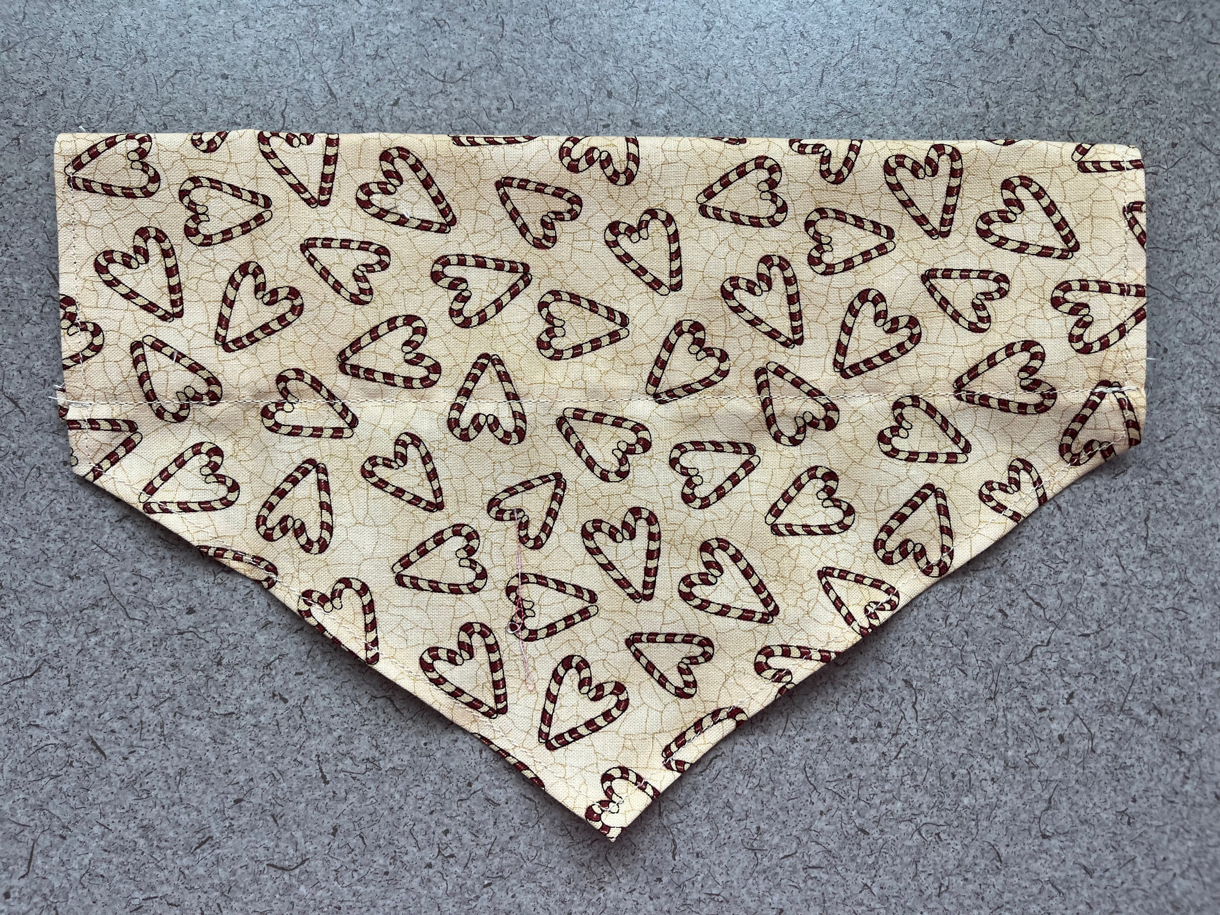 Pet bandana that fits onto the pet's collar. Quilted cotton fabric with candy cane pattern!
